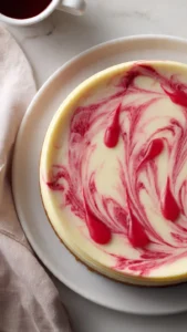 • Be gentle when swirling the raspberry sauce into the cheesecake batter to keep the beautiful marbled effect.
